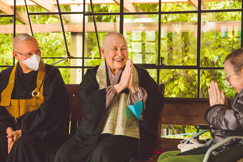 mestras do darma para abençoarem o local: Monja Ishin e sua mestre de